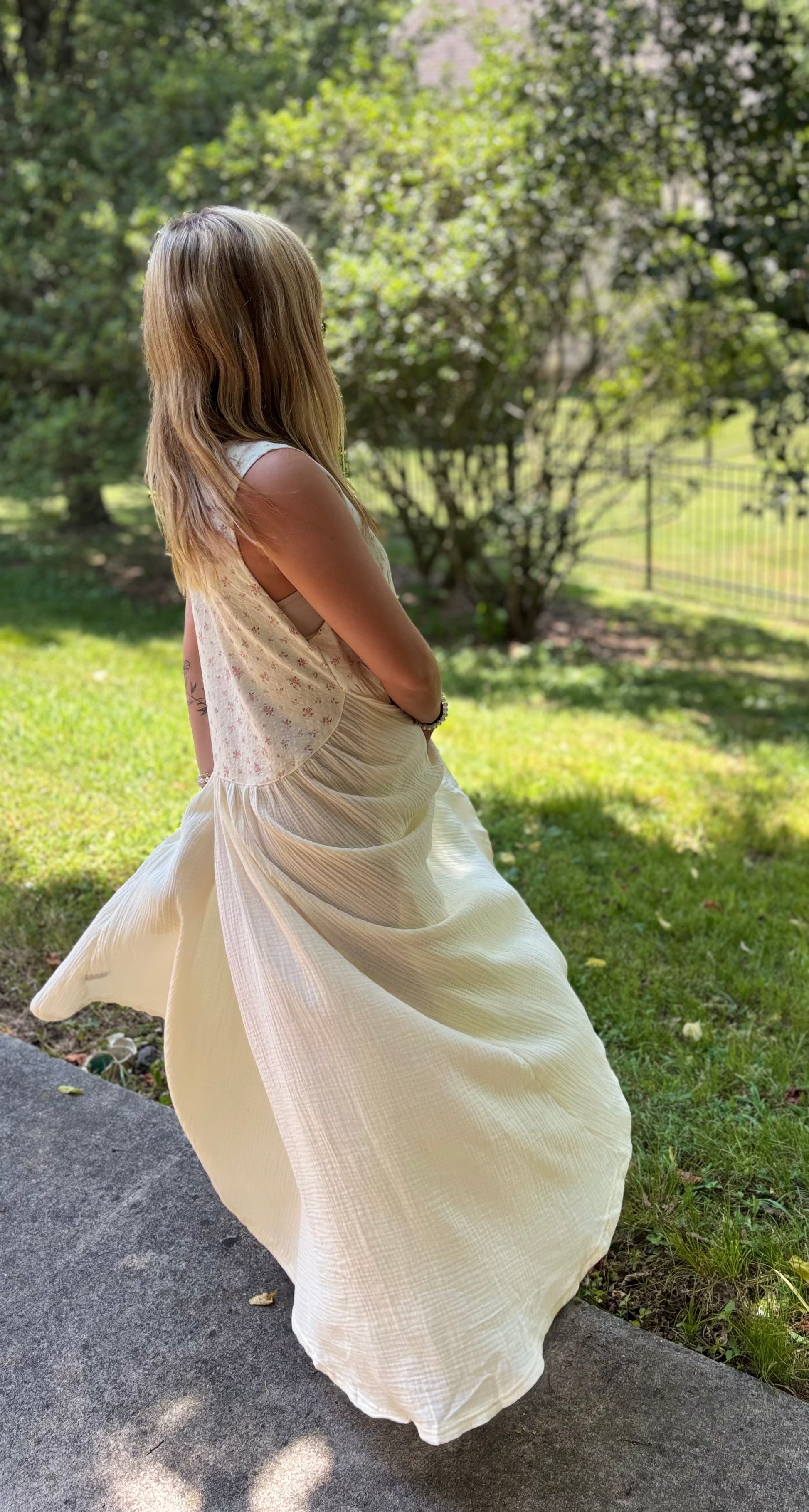Flowy, and comfortable! This dress features button up detail and a hi-lo hemline. Perfect with a cute sandal for work or church.