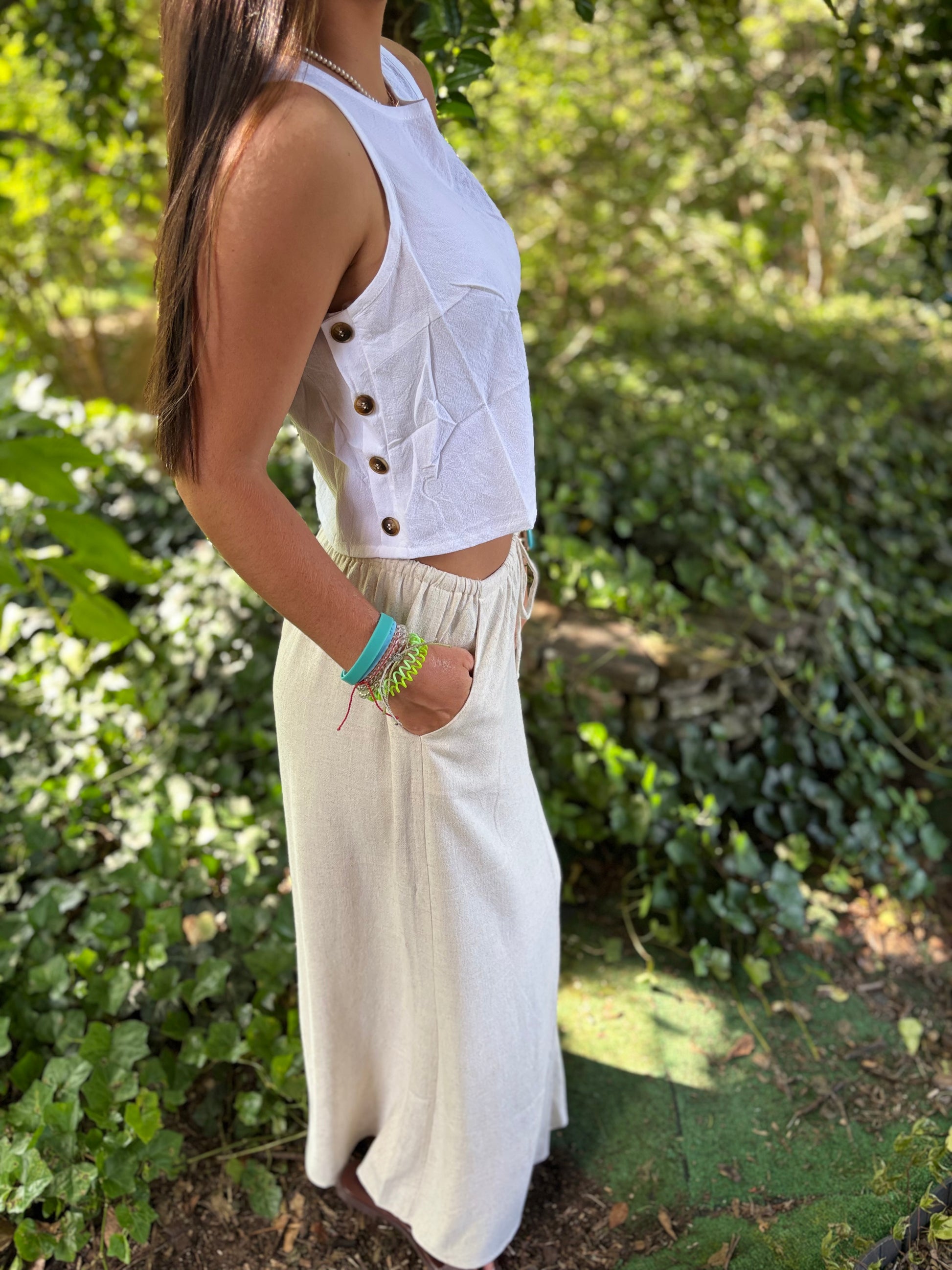 Pair with our Linen Blend maxi skirt or straight leg pants.