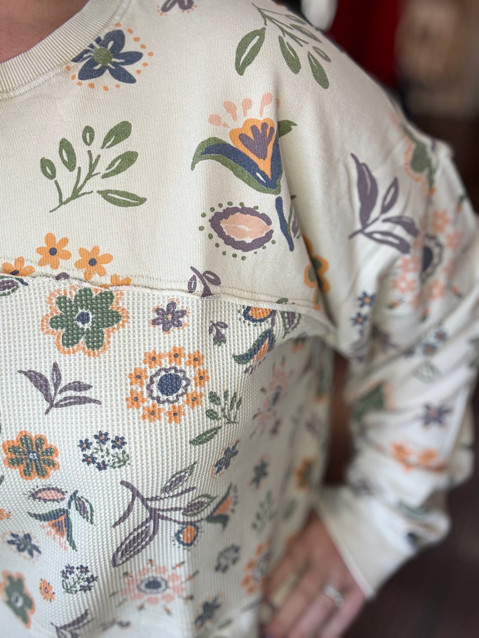 Our “Soft Bloom Top” is a mix of color and pattern, put together perfectly for a casual boho-inspired look. Pair with denim, leggings, and layer with a cardigan for a transitional Fall look.